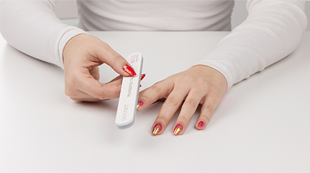 Remove flaking polish residue with your Gelmoment cuticle pusher. it should come off easily; do not force it, this can damage your nail.