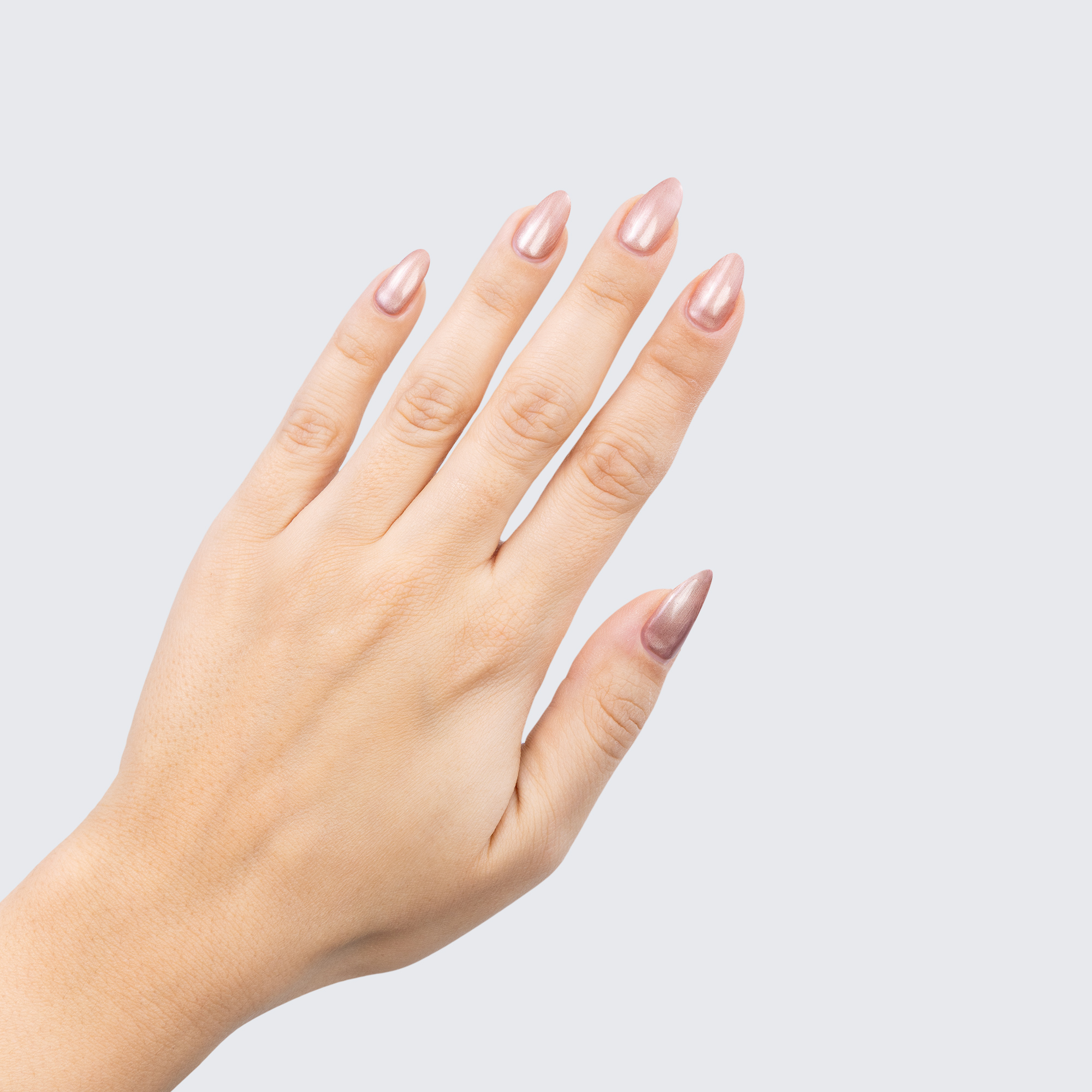Rose gold. Light. Pearl finish. Opaque. Warm undertone.