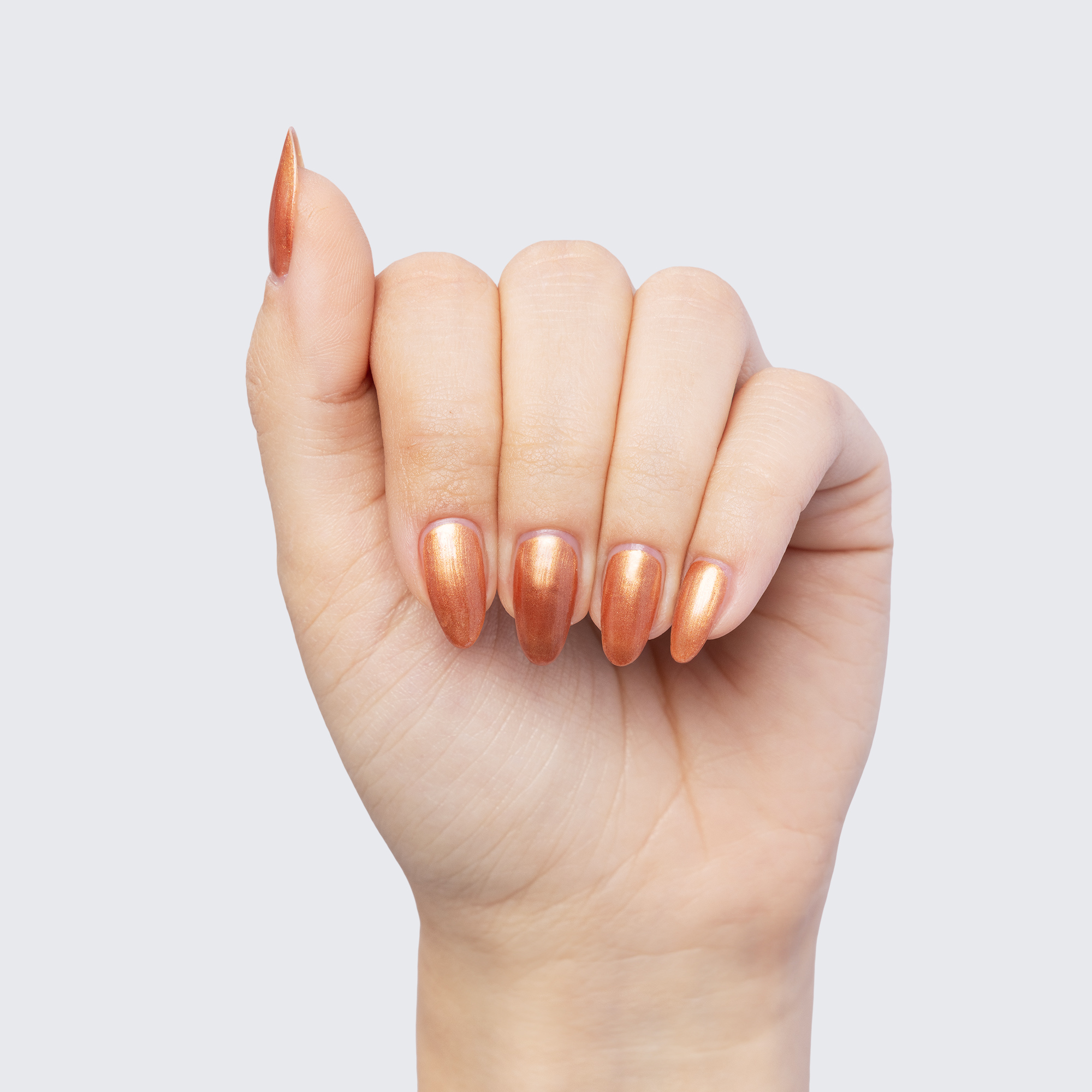 The gold sheen of this rich copper polish is timeless.